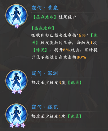 觉醒之后,还可以获取三个特殊的窥伺技能,其中黄泉可以进一步提升圣元的吸血和攻击力,而深渊和孤咒则能够保障大招更高频率的触发“诛灵”。