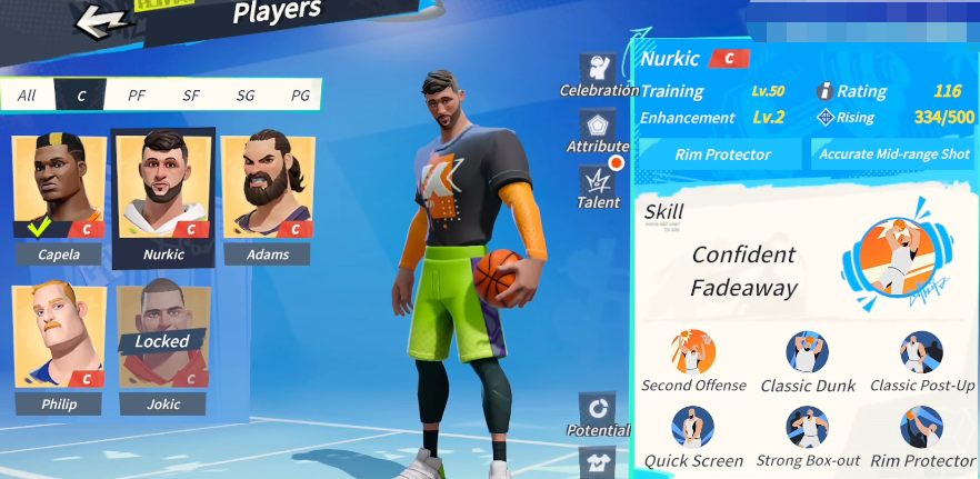 目前游戏内总共只有五位中锋,相对于突破两位数的后卫球员,这个数量是比较少的,而且仔细看的话你会发现其中处于现役巨星位置的中锋也比较少,唯一称得上厉害一些的只有约基奇,虽然其他球星凭借技能加持也能在游戏内打出强硬表现,但论起综合统治力还是达不到mvp级别的。