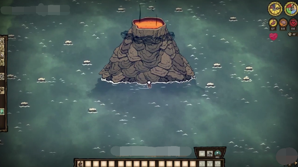 第三种方法是比较常见的,在火山季通过不献祭的方式,在陆地上等待火山喷发,形成火坑,之后再用冰熄灭,便可获的黑曜石。此方法可以较为快速的获得大量的黑曜石,不过要一直躲避陨石的坠落,还是有一点危险的。