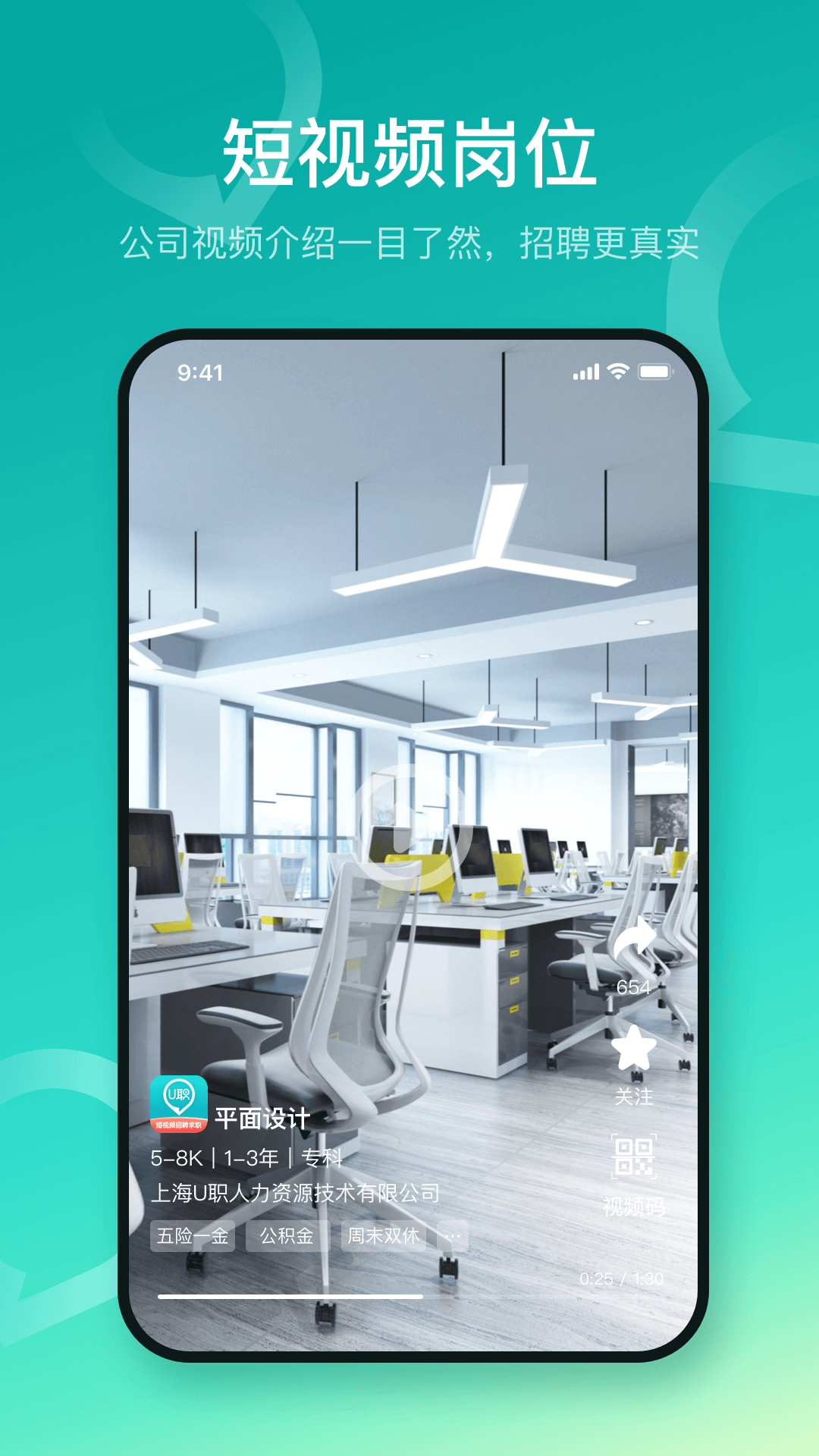 U职是一款新颖独特的找工作软件。他通过视频的方式让大家去了解不同的企业。通过这些短视频,求职者可以看到不同企业的简短介绍以及对我招聘的职位人才需求,再加上对企业的文化了解,就可以轻松的找到自己喜欢并且符合自己的工作。当然如果有意向公司的话,也可以在这里进行线上的视频面试。