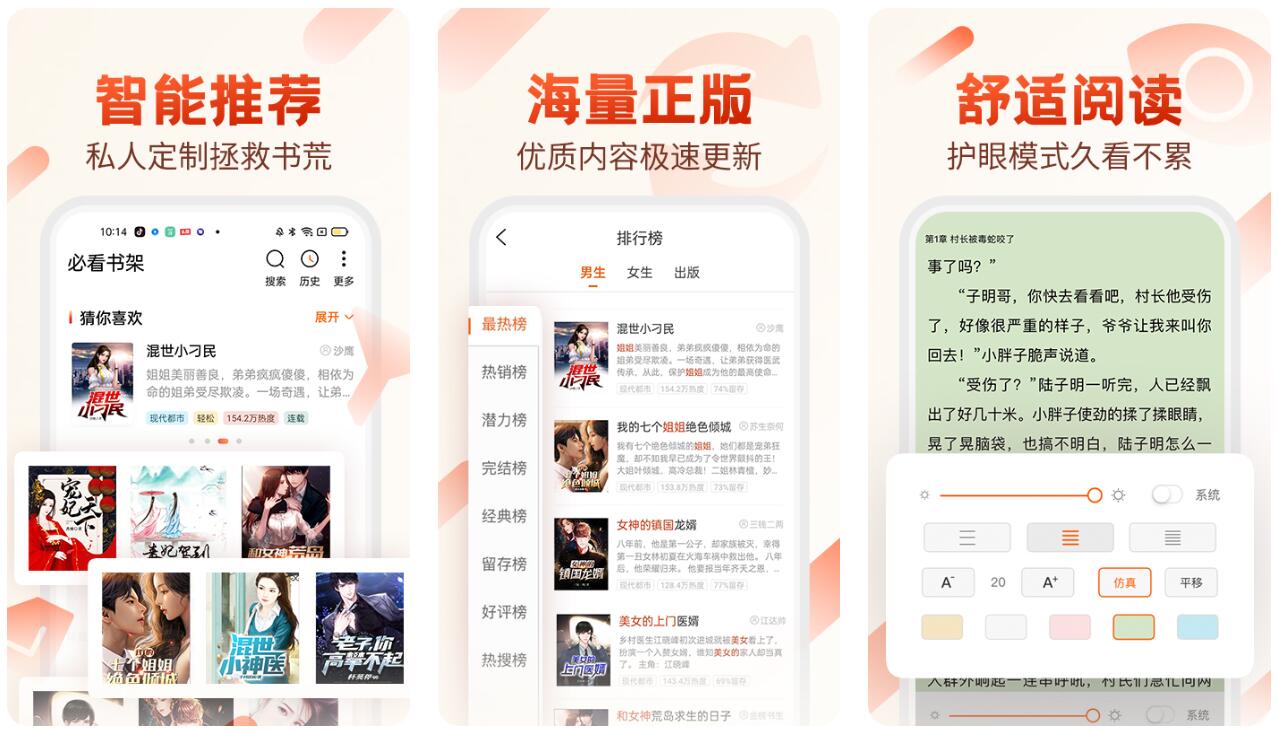 书荒的用户可以直接通过本款应用的必读榜来寻找感兴趣的作品,app也为大家提供了完善的小说分类,让各位用户可以根据自己的喜好来开启阅读,目前大家也可以在设置功能当中直接开启读书的偏好调整。