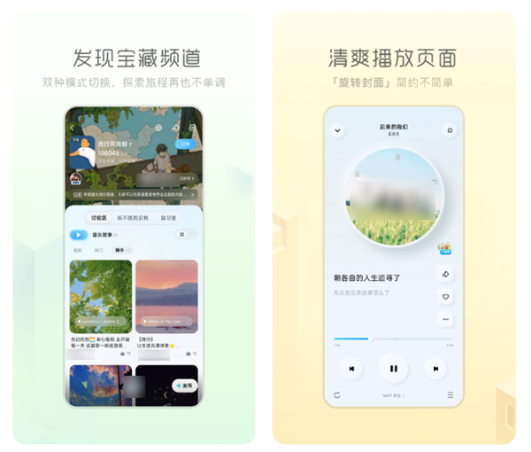 经典听歌软件的概念版产品,其实就是进行了一些大胆的尝试,还有一些十分超前的新功能可以率先体验。其中玻璃泰的设计让界面的逼格拉满,通过旋转封面和歌手的写真切换更是让播放界面变得更加完善,有氛围感。在这里我们可以看到很多用户分享自己爱听的歌曲,再也不怕歌荒啦。