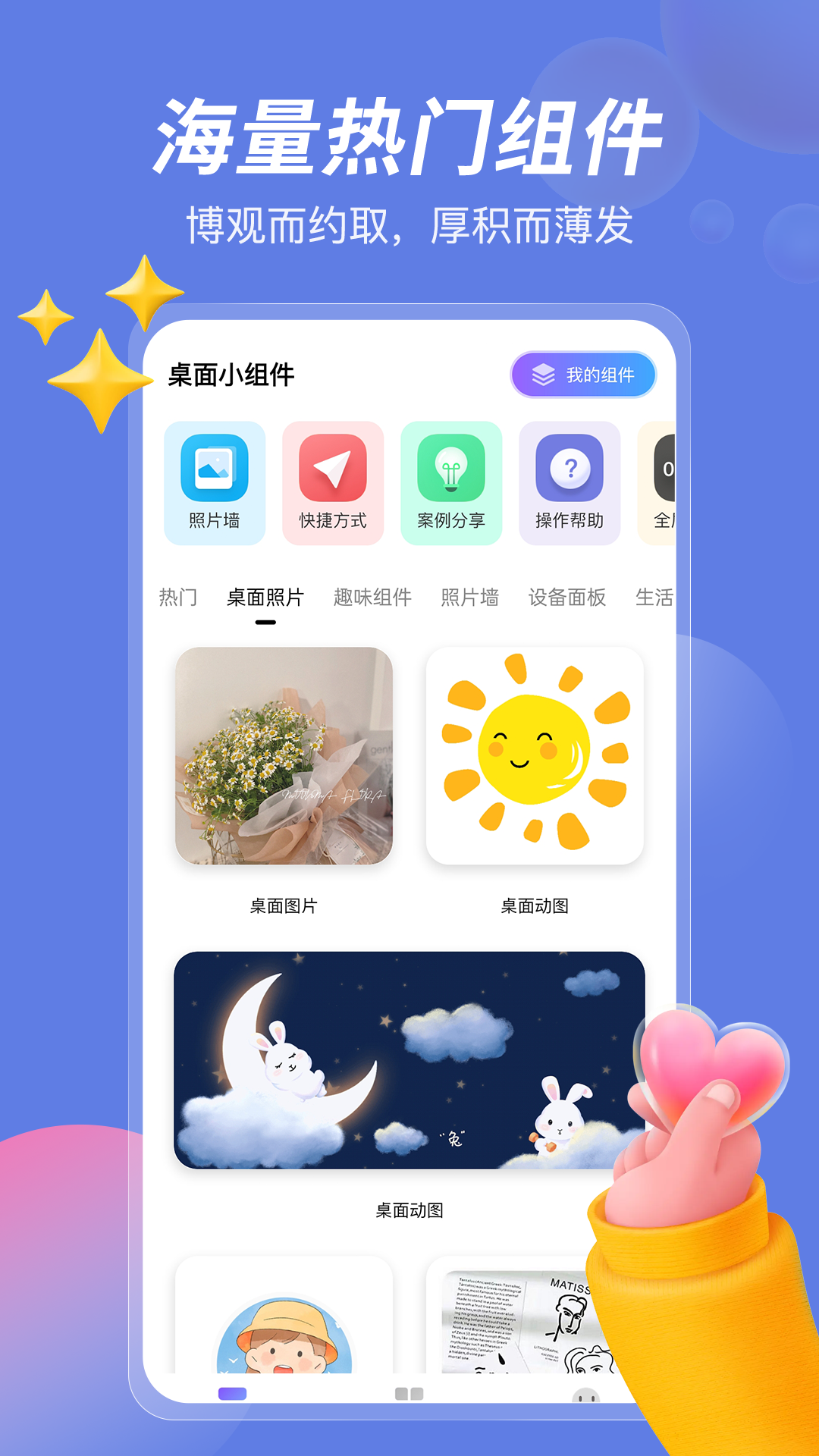 在这款软件中收录了非常多有用有趣得小组件以及便利贴贴,当到指定时间之后软件便会为小伙伴弹送信息提醒。
