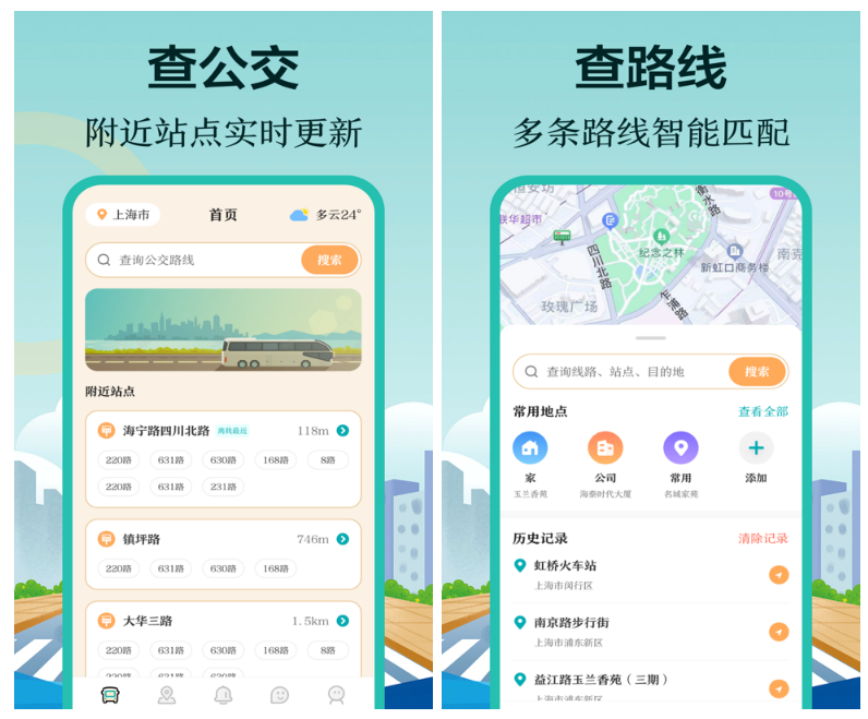 开启定位、搜索班号或者是录入出发地、目的地就可以显示出对应的公交线路,而且点击车站之后还可以看到附近公交的位置信息以及到站情况,让我们能够实时掌握公交的动态,从而规划好自己的出行路线和时间,一手掌握公交信息。如果经常乘坐也可以将线路收藏起来,这样就可以在首页显示了,非常方便。