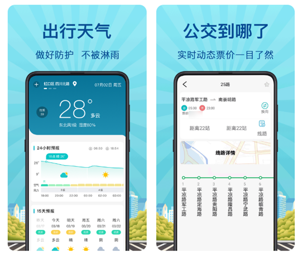 看名字就知道这款软件的核心功能就是检测了公交车辆的动态,而且还带有线路规划、转乘甚至是实时的交通路况信息,为我们推荐当前的最优路线,不让时间和金钱浪费在路途上。当然了,软件中还集合了很多不同的实用小功能,比如说加入了实时天气信息,增加出行的安全感。