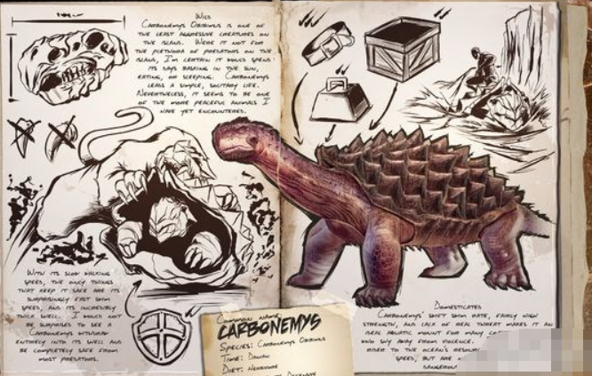 在游戏中和淡水碳龟外形比较相似的就是甲龙,在这个恐龙的外表有着非常多的尖刺,所以防御能力非常强,而且这个恐龙善于使用尾巴来攻击玩家,所以在捕捉这个恐龙的时候要小心被他们的尾巴攻击到,因为这种独特的特性,所以在游戏中非常适合作为坦克帮助玩家运输一些工具或者抵挡其他动物的攻击。