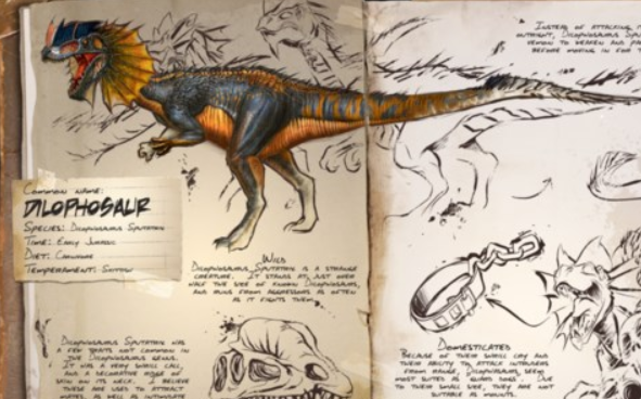 相对等级比较高的就是双脊龙,这个龙有着非常尖锐的叫声,而且体积相对比较小,这是玩家会遇到的第一个食肉恐龙,因为这个恐龙的攻击方式是使用毒液,所以玩家在游戏中一定要小心,毒液会导致玩家的视线模糊,但是双脊龙的奔跑速度比较慢,而且生命值也非常低,玩家可以使用这个恐龙来迷惑对手。