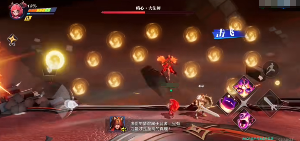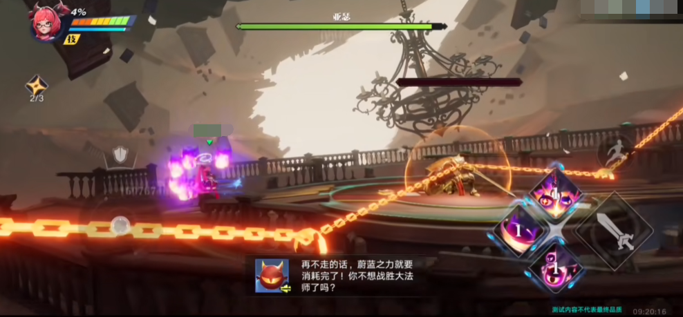 BOSS有三个阶段,每个阶段都有不同的攻击方式和场景限制。在第一个阶段,安琪拉不能使用自己的技能,只能用普通攻击和格挡。这个阶段要注意躲避BOSS的各种攻击,尤其是大火球和轰炸,这些技能伤害很高,如果被命中很容易死亡。还要注意旁边四个飞行怪物的光线攻击,虽然伤害不高,但是会打断你的动作。当这些飞行怪物落地时,要尽快消灭它们,以免它们再次飞起来。当BOSS的血量低于2/3时,他就会进入第二阶段。