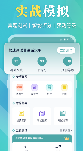 在普通话的学习过程中,对于自己实力认识的不够是最大的难题,很多小伙伴觉得自己学习的差不多了,但是一到考试的时候就掉链子,这是因为我们缺少一款测试app,小伙伴们可以直接点击链接下载,轻松完成普通话的测试哦。