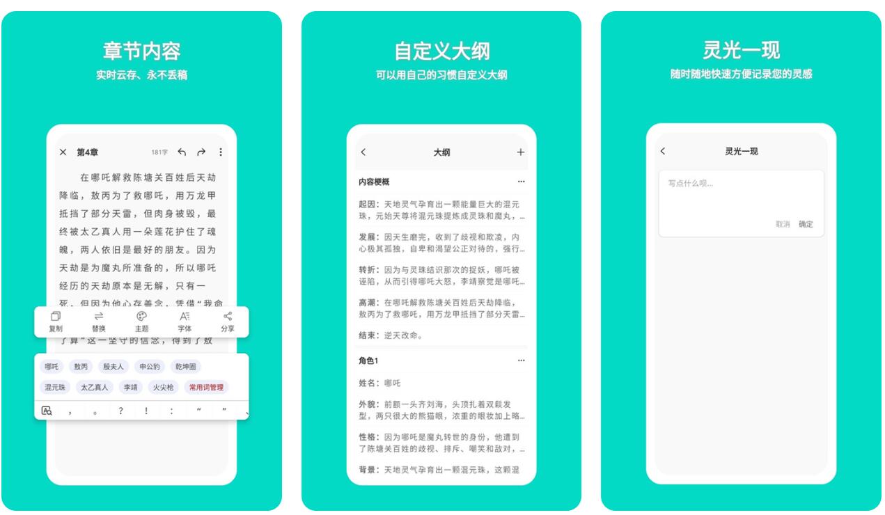 丰富的辅助创作功能是软件的一大特色,各位在使用期间可以通过本款app快速书写自己的故事。为了更好的激发灵感,app当中也会分享一些高质量作品让各位进行阅读,而用户编辑的过程中还可以将内容下载到本地。