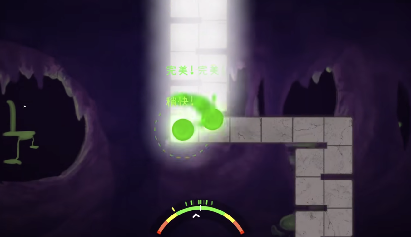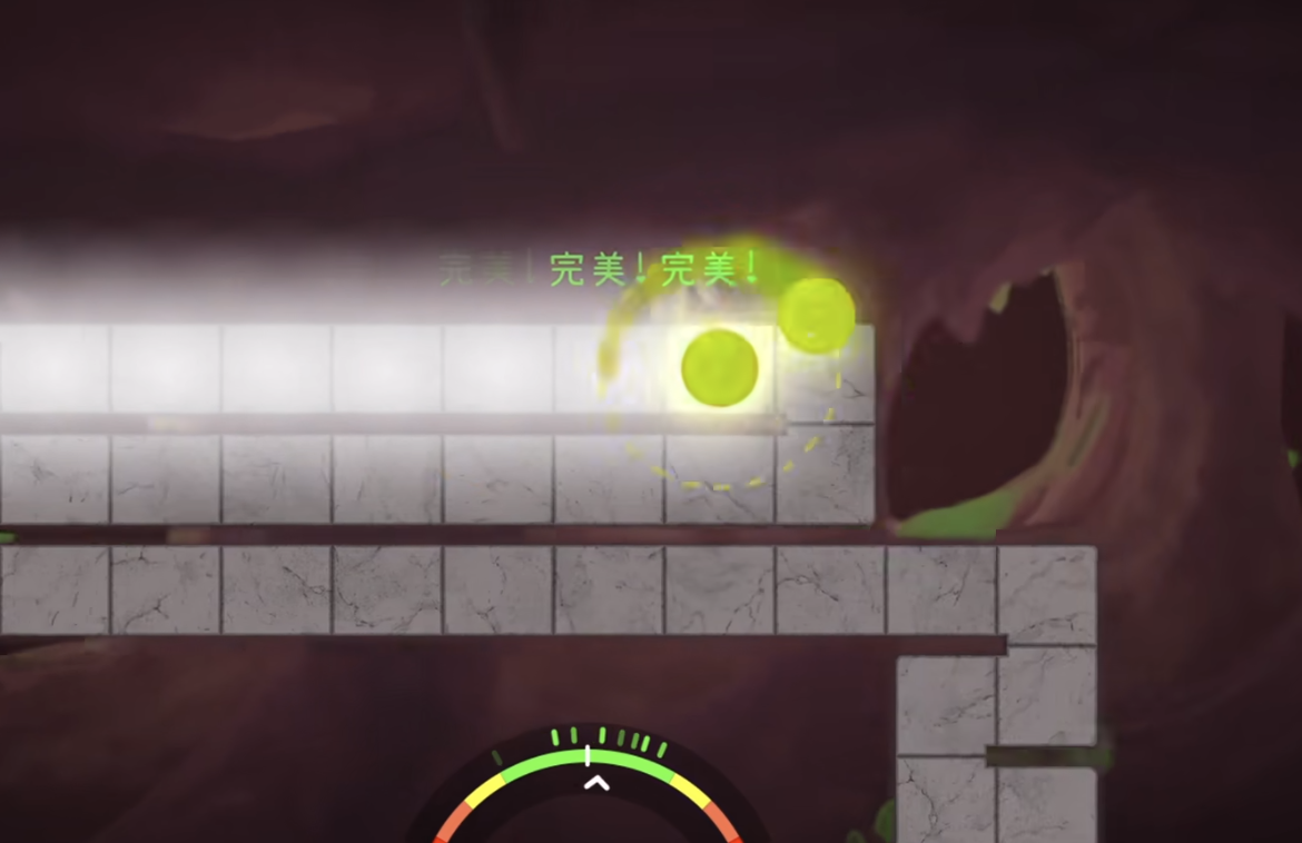 玩家在经历过测试后,就可以正式进入游戏游玩了。这个游戏是玩家通过点击屏幕操控两个小球前进,在前进过程中,小球会保持旋转。需要注意的是,小球必须要按照规定的路线前进,而路线是有直行和转弯的。这就非常考验玩家操作了,玩家需要在音乐声大时点击屏幕才能让小球走直线。