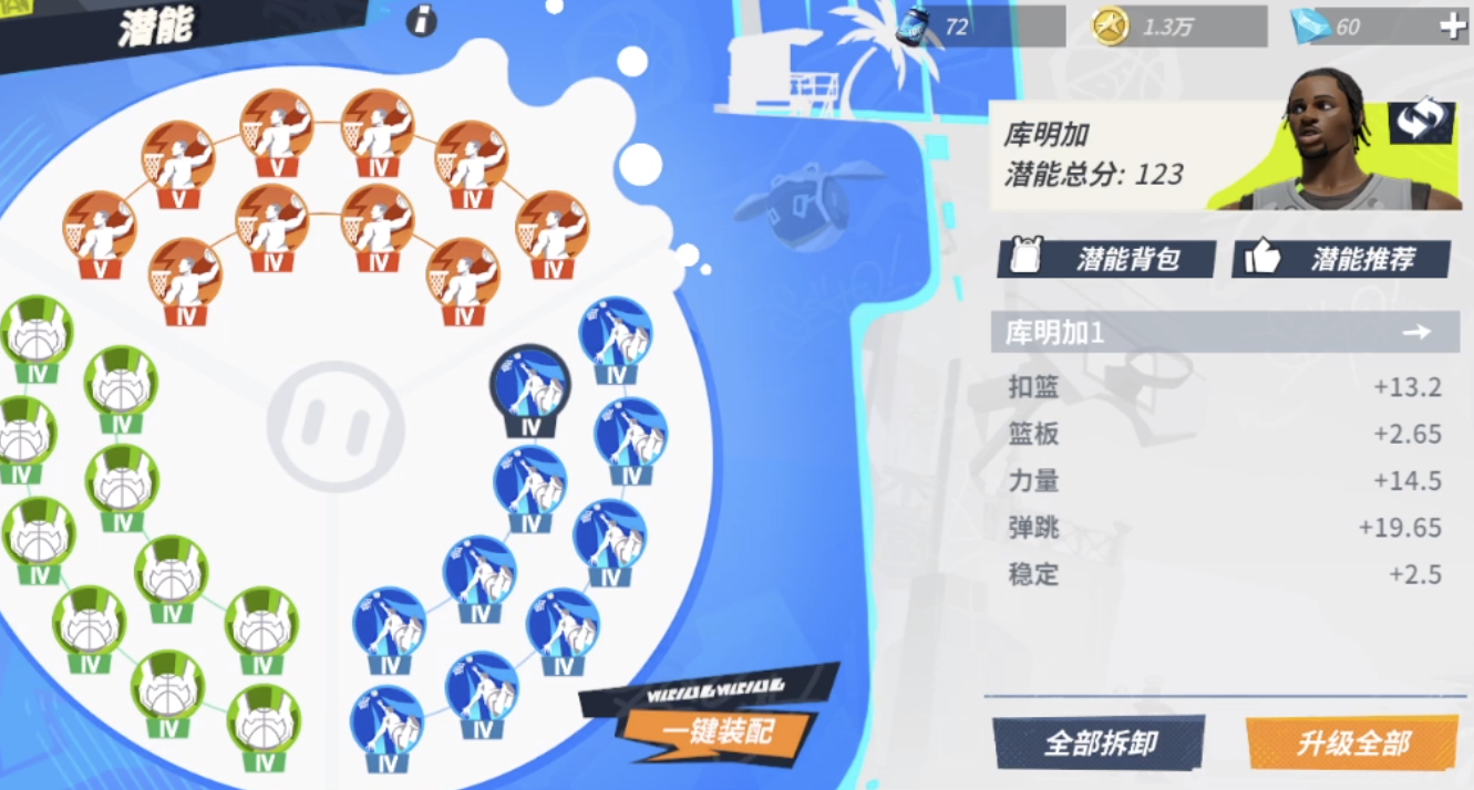 之后来说下潜能系统,库明加如果全带加强投篮三分球的,那库明加的投篮能力就非常恐怖,堪称球场得分机器。这样的得分能力相信会给玩家一个非常棒的游戏体验。