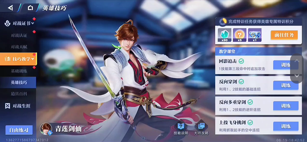 而李白的被动技能可以解锁大招,并增加攻击力,所以要尽量利用平A积累剑气。李白的一技能可以分三段施放,第一段和第二段可以突进到敌人身边,第三段可以回身反击或者逃跑。