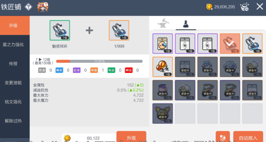 大家在铁匠铺中是可以对任何装备进行强化、升级的,还有教授、改变潜能、篆刻铭文以及免除过热的作用,是手游中对玩家帮助比较大的玩法了,其中,想要给装备升级只要获得了晋级资料就能在铁匠铺中进行,但是晋级资料一般需要通过刷副本的方式才能获得。而强化装备则需要使用带咒语痕迹,不过这个就比较容易获得了,只需要挂机就能直接得到了。