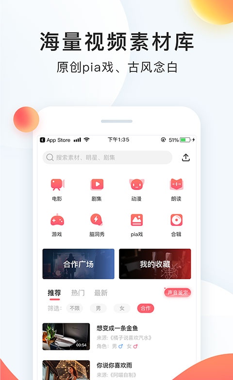 亮出你动听悦耳的声音,就可以制作一部专属于自己的配音视频大片,超级多的声音大咖都在配音秀当中为他人设计过其他的作品,每天都可以在线挖到非常宝藏的声音,比如:少年音、萝莉音和大叔等等。