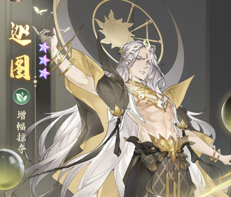 迦图的攻击可以对敌人进行法术伤害,同时还有一半机会对敌人进行效果掠夺,这个玩家们可能不太清楚,当敌人深身上拥有增益效果或者属性提升效果的时候,释放技能可以随机偷取一个效果给予同列队中的源师,是都可以享受到的,在搭配选择上,第一个一定是选渊泉;