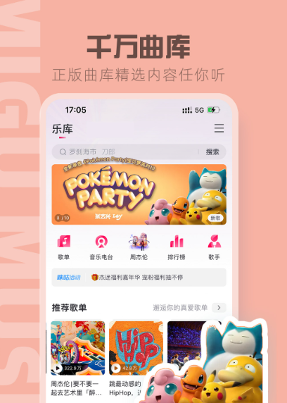 它拥有超多的曲库,用户可以轻松搜索到知名歌手的歌曲,随时随地享受音乐。此外,还为新用户提供7天的VIP体验,每天听歌一小时即可领取1天VIP卡。这为用户提供了更好的音乐体验和更多的福利。