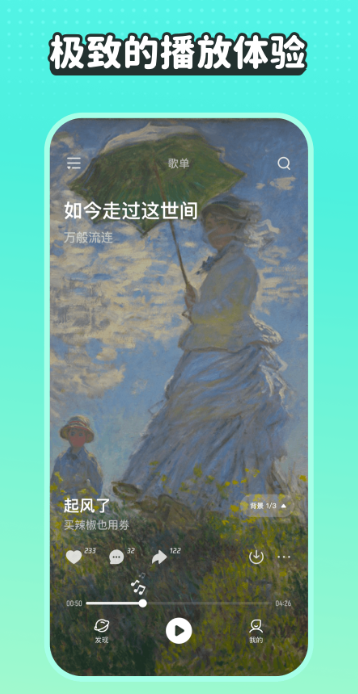 大家可以随时与其他用户一起讨论,通过与其他软件的联动,搭建了一个充满活力的音乐生态圈,让用户能够更好地发现和分享音乐。除了丰富的音乐资源,还提供了专属的音乐杂志,让用户了解最新的音乐动态和资讯。同时,软件支持设置歌词特效和沉浸式视听,让用户在享受音乐的同时,也能体验到更加个性化的视觉效果。
