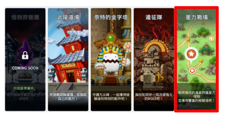 以上就是冒险岛枫之传说星之力战场怎么玩,冒险岛枫之传说星之力战场攻略的全部内容,星之力战场隐藏着一些更具挑战性的怪物等待玩家的挑战。要到达这些高级区域,玩家需要前往地下城的主菜单,在那里会找到相关选项。这些区域中的怪物更强大,但击败它们将获得更高的经验值和奖励,是提升角色实力的重要途径。