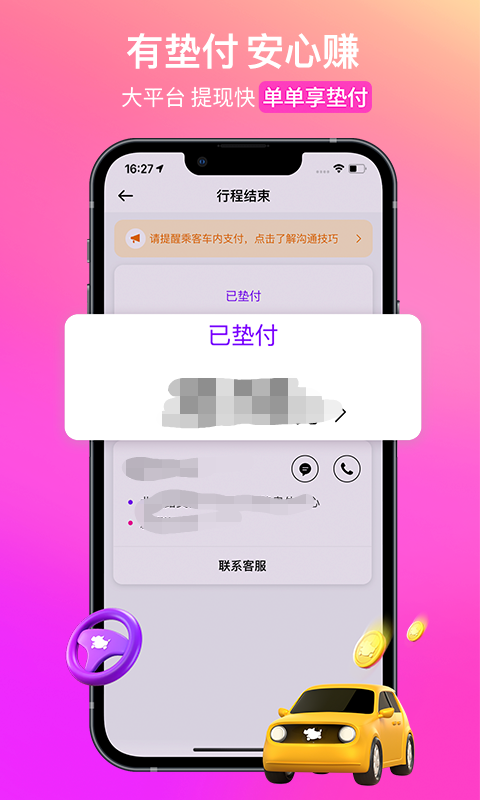 在这个软件当中对于司机是非常友好的,因为他的订单数量是相对于而言比较稳定的,平台对每一单的补助也会非常大,有垫付的操作所以大家赚钱更放心,操作也非常好上手。