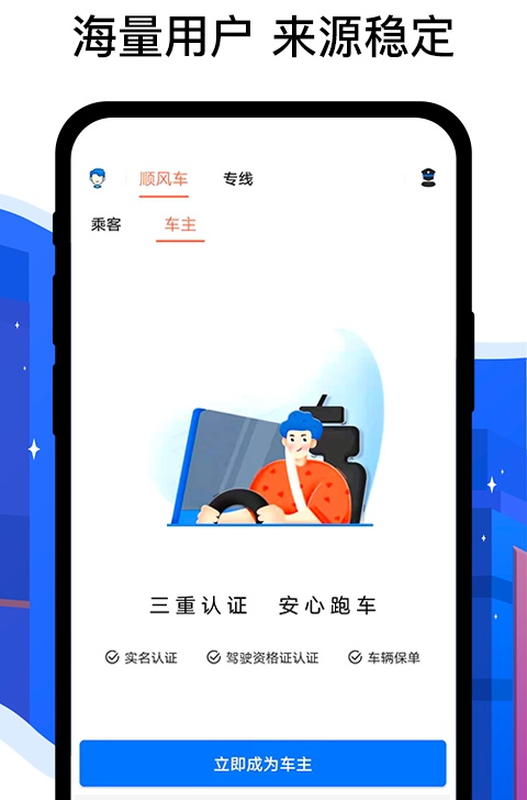 可以连接顺风车司机和需要拼车客户的一个平台,为屏幕前的大家提供了一站式的简约出行服务,海量的用户找车信息可以为大家提供更多的订单资源,智能推荐一些顺路订单,可以让大家在一次出行过程中赚更多的钱。