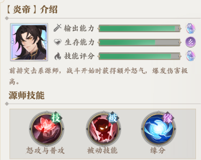 炎帝的攻击名副其实,对敌人造成法术伤害的同时还会施加额外的灼烧效果,同时在下一次面对炎帝的攻击会额外收到30%的伤害,当炎帝在强化到三星的时候,可以配合被动可以获得60%额外的暴击伤害,炎帝单体伤害是非常优秀的,爆发和追击能力都很强;
