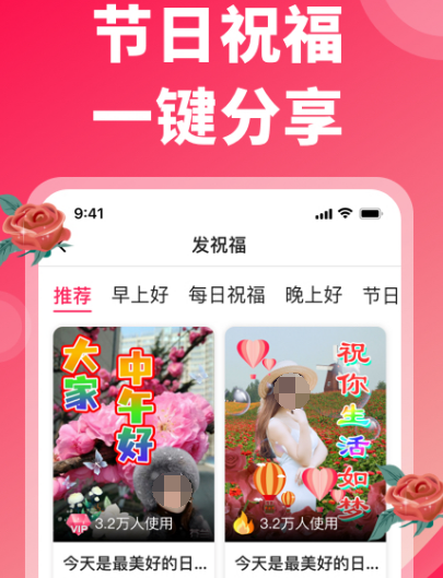 这是专门为喜欢聊天的小伙伴打造的一款软件,其中有各种精美表情包,有适合中老年的祝福表情包,也有适合年轻人的恶搞表情包,只需简单几步即可,一键生成专属表情。比如节日问好图,早晚问候图等等。不仅可满足人们聊天需求,满足人们对表情包的需求,同时也能生成绚丽多彩的音乐相册。