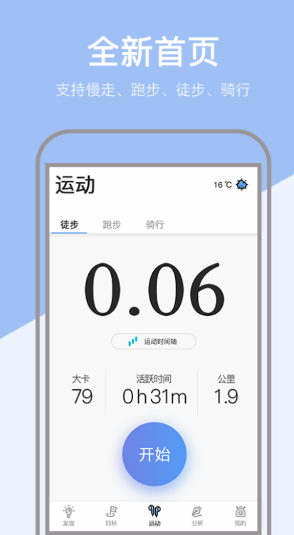 运动健康计步器支持骑行、跑步、慢走等多种运动。在首页上,您可以直观地看到徒步、跑步、骑行等选项,根据自己的需求开始记录跑步或骑行的公里数、活跃时间和消耗的卡路里。不仅如此,即使对运动没有经验的人,运动健康计步器也提供了专业的运动攻略,帮助用户更好地理解跑步对身体和身材的益处。