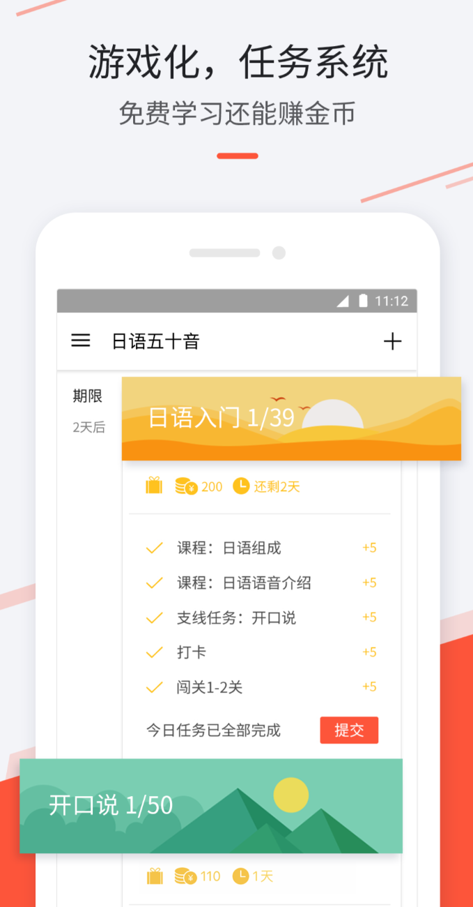 这款软件应用它,用户能够体会真人发音的基本日语单词,从“五十音图”开始学习日语,这里,有受欢迎的日剧,日文歌,动漫等趣味内容,帮你激起学习日语的兴趣和塑造积极学习日语的主动性,这是全世界数千万日语学生随身携带的专用工具和日语翻译工具。五十音图、单词、语法、会话……步步升阶,轻松入门学日语,它是日语爱好者的学习平台,集日语练习测试、单词背诵、知识讲解、口语、日语词汇、课程解释等为一体,为用户提供最好的学习服务。