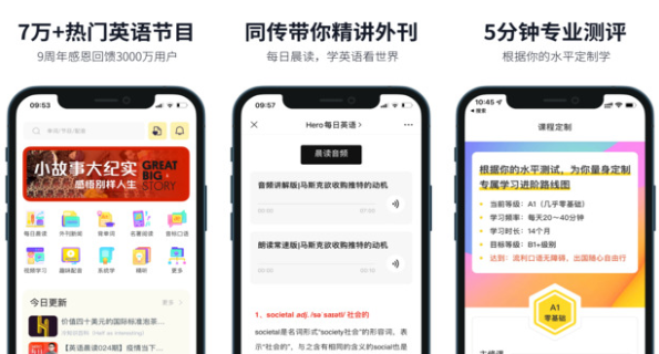英语学习中最重要的内容就是张嘴说话,这款软件中提供各种早读内容的英语资料。每天早上5分钟快速学习比背很多单词都管用。在制定学习英语的计划上会根据用户的测评来制定,每步计划不会很难,让用户有足够的兴趣继续学英语。