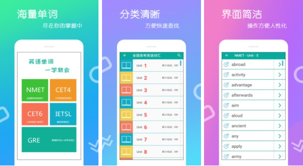 学习英语最重要的内容就是背单词,有了足够的词汇量才能有足够的储备量。在词汇量的设置上包含了四六级、雅思等多个类目,满足不同英语学习需要的用户,在词汇量上根据用户的水平来制定。