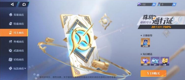 除了月卡之外,游戏中另一个颇具性价比的氪金项目就是进阶战令了,相较于普通战令,该战令给到一名当赛季的战令英雄作为重击奖励,同时升级战令也可以获取大量材料和钻石等,该战令需花费680点券购买,而1280点券的典藏版战令只比它多了一些头像框等外观奖励,以及直升10级战令等级,就性价比而言还是进阶版战令比较划算。
