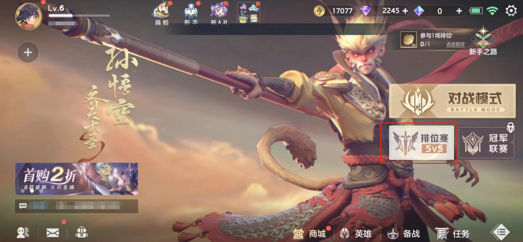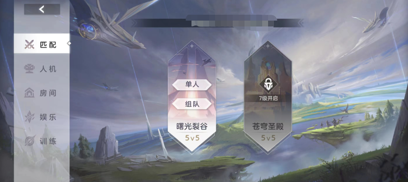 曙光裂谷的5v5可以通过主界面的排位赛或者对战模式进入,前期英雄不多的话建议还是直接从对战进入,否则自己的拿手英雄被ban胜算就会变低,5v5有单人和组队两种选项,前者就是直接开游戏,后者则会创建一个小队,然后可以拉人一起组队游戏。