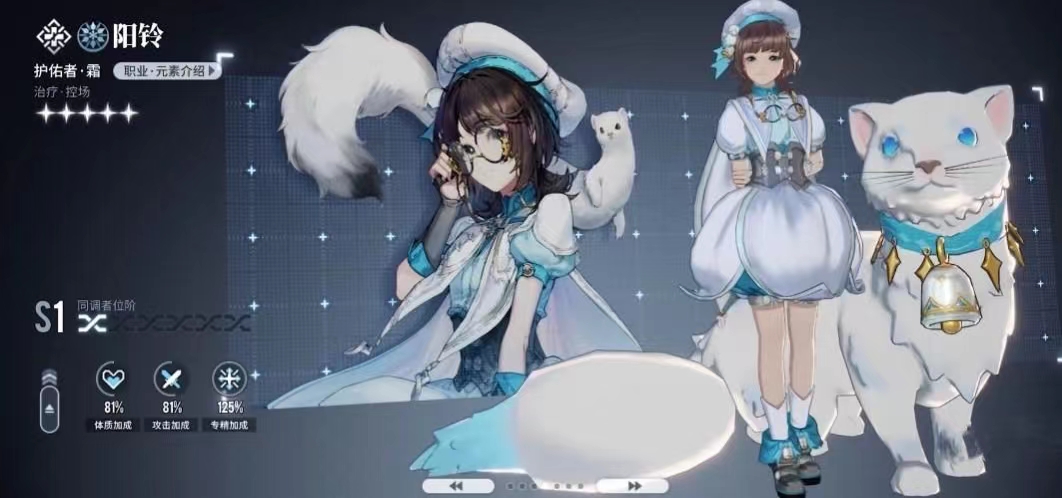 阳铃这个角色也是比较独特的,他出场的时候就是自带坐骑的,所有的小技能一般是用来回血,速度超级快,至于大技能是能够提升队友以及自身的生命值,它的属性也是游戏里面比较独特的,那就是霜元素的角色,在战斗的时候还有一个比较有用的技能可以对敌人使用,那就是可以让敌人施加一个易伤效果,这就意味着无论怎么样攻击敌人,都会让他们最容易受到伤害,最后就是他的大招,不仅可以为全体团队的成员回复生命值,还能让整个团队里面的攻速以及伤害力提升。