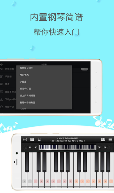 喜欢弹奏古典钢琴曲和流行钢琴曲的朋友们都非常适合使用的一款钢琴演奏软件,这款应用中有很多知名钢琴曲的简谱,能让大家一边看谱一边弹钢琴,还能自动弹奏,让大家提升音感,弹奏的曲子更有节奏和韵律。