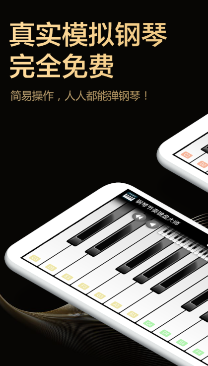 一款可以听钢琴、学钢琴、练钢琴的弹奏软件,在这款应用中大家的手机上会模拟出钢琴的琴键,通过点击屏幕就可以练习弹奏,同时应用中还有不少的钢琴曲谱,能丰富大家的曲库,勤加练习,下一个钢琴大师就是你!