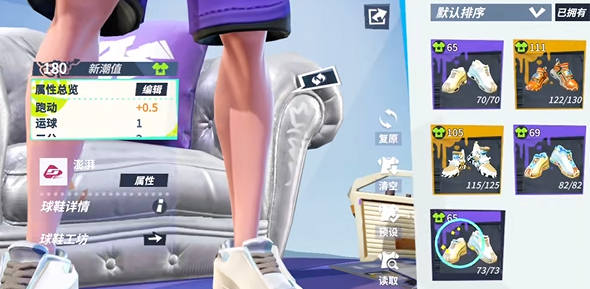 在测试期间,游戏中就赠送给玩家们大量的球鞋了,小编了解到,这个漫步鞋盒是需要玩家们在【球鞋】玩法中购买鞋盒,才可以开启的,当然球鞋玩法等待玩家们等级达到20级的时候就可以体验了,自己开出来的球鞋可以进行DIY,DIY后新潮值会自己改变,同时还可以给玩家们提供额外的属性,属性分成了四种;