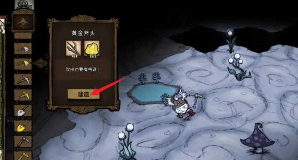 第二个步骤就是做一个“蘑菇圈”。你可以用4个蓝蘑菇做一些东西。在“制造”一栏里,有对应的配方。