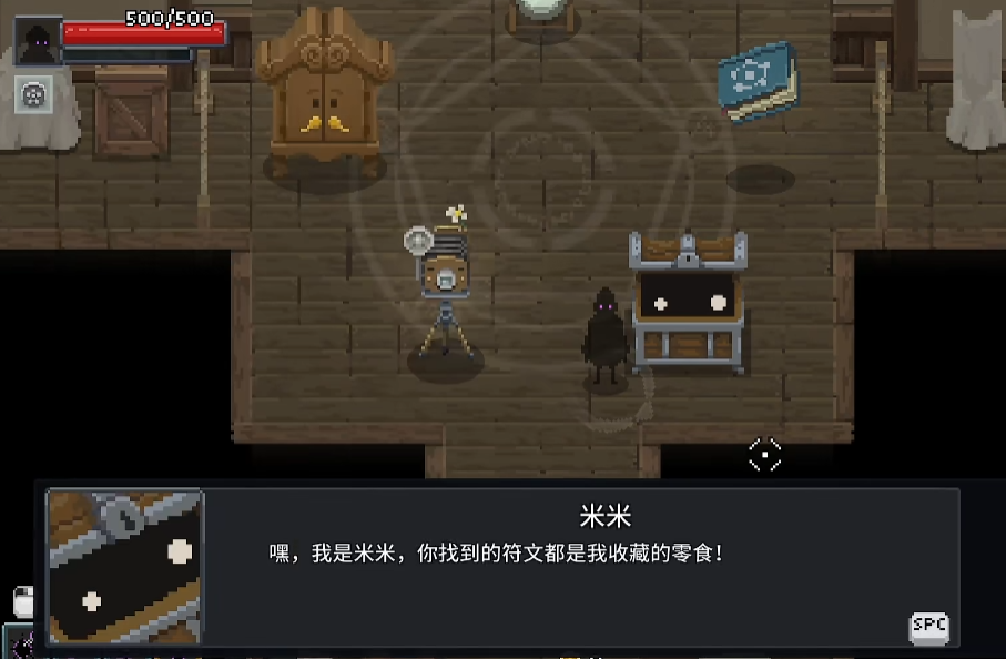 另外还有一个npc米米,它是一个储物箱,在游戏前期的时候,玩家的背包栏位置是比较少的,只有当玩家进行一步步解锁,才会有更多的栏位,因此当背包里的东西装满了,没位置放的时候,大家可以把多余的物资都存放在米米这里,不用担心来回取物资很麻烦,它会出现在很多地方,所以存取都是很方便的。