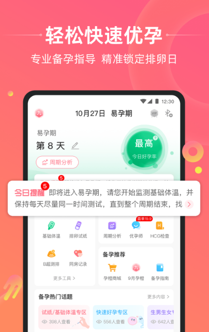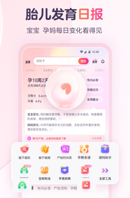 它能为孕期和育儿期的人群提供全方位的服务。通过提供线上与线下一体化的孕育解决方案,帮助用户提高受孕几率和生育质量。主要功能包括专家医生问答与直播课程、微课堂、专题知识、孕育百科、孕育工具、圈子交流、数据记录与分析、孕育产品和服务等,满足用户在不同阶段的需求。应用内的专家医生问答与直播课程提供了专业的医疗指导,微课堂和专题知识则提供了丰富的孕育知识,孕育百科和孕育工具为用户提供了实用的孕育技巧和工具。圈子交流功能让用户与其他孕育期的人群分享经验和感受,数据记录与分析功能则帮助用户更好地了解自己和宝宝的健康状况。