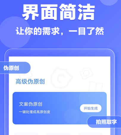 伪原创是现在很多小伙伴都在使用的软件,作为智能改写好帮手,界面简洁,一目了然。为小伙伴打开软件之后,都会被其中简洁的界面深深的所吸引,有文本比较、拍照取字、文案提取、关键字提取、文章查重等一系列功能看似页面简洁,但真正了解会发现功能强大,值得推荐。
