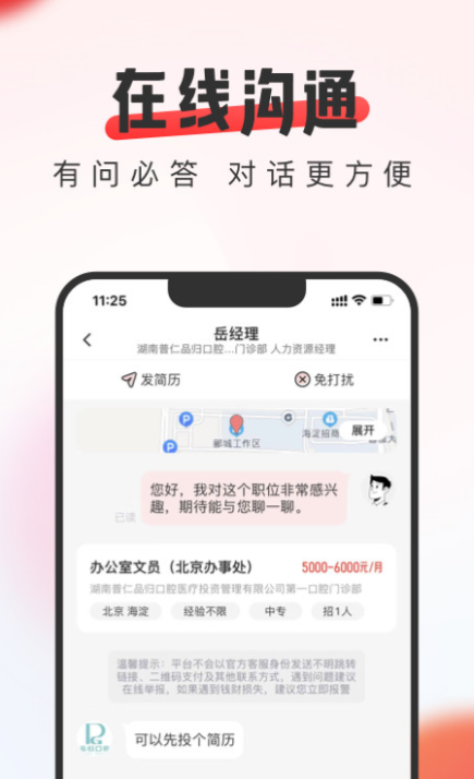 Boss直聘为用户提供了大量优质职业岗位的信息。用户只需在该软件上上传个人简历并投递,就有机会收到专业的公司人士发送的面试邀请。成功通过面试后,即可顺利入职,使找工作变得更加简单。此外,用户还可以利用该软件与心仪的工作岗位人士进行在线沟通和交流,以便更加清楚地了解工作的具体内容。