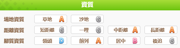 木乃伊小海湾其实就是超级小海湾的万圣节版本,那个版本她会换上宛如木乃伊的服饰,所以才有了这个名号,其资质与技能本质上和原本是没什么差异的,结合场地,距离和脚质各项资质的数值来看,她是一个擅长在草地跑中长距离的先行马。