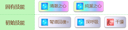 技能方面,固有技能她有两个,清澈之心可以让她在竞赛中期处于好位置时恢复持久力,纯洁之心的效果也是一样的,不过恢复的持久力会更多。