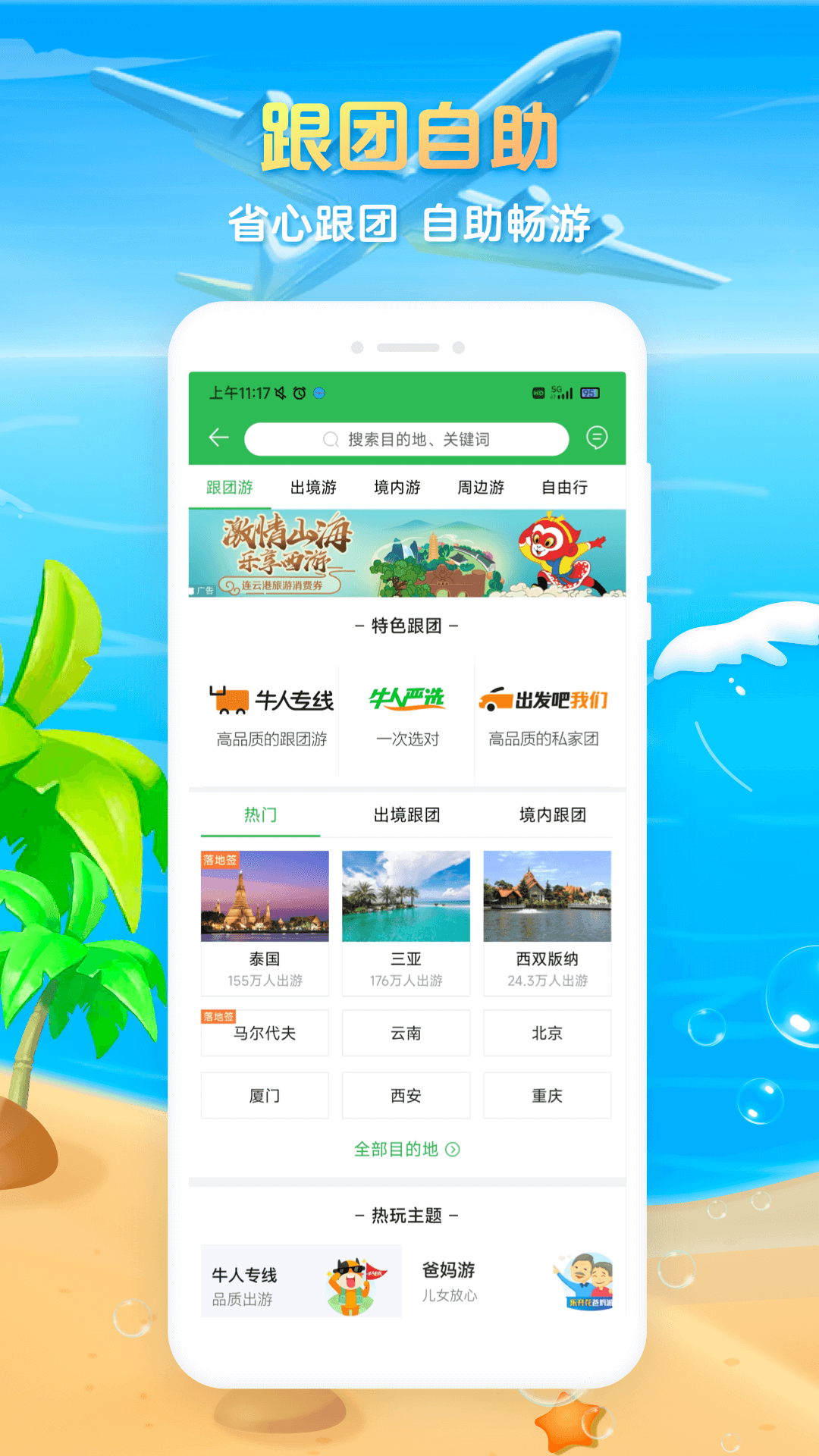 途牛旅游给线上以及线下的消费者提供了各种旅游服务。其中包括跟团,自助,自驾以及景区门票的购买等服务。而且他还在不断的提升和控制旅游产品质量。不断升级带给大家的服务品质。而且随着用户出游趋势的个性化,途牛也正在建设全品类动态的旅游服务系统。