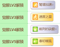 最后就是四个觉醒技能,弯道加速名副其实,会在过弯时给予速度加成,速度之星则可以让樱花千代王在最后弯道的前列位置时更容易突围,前列的诀窍能让樱花千代王在前列时更容易取得好位置,而春初暖风则令其在春季赛时获得速度和力量的提升。