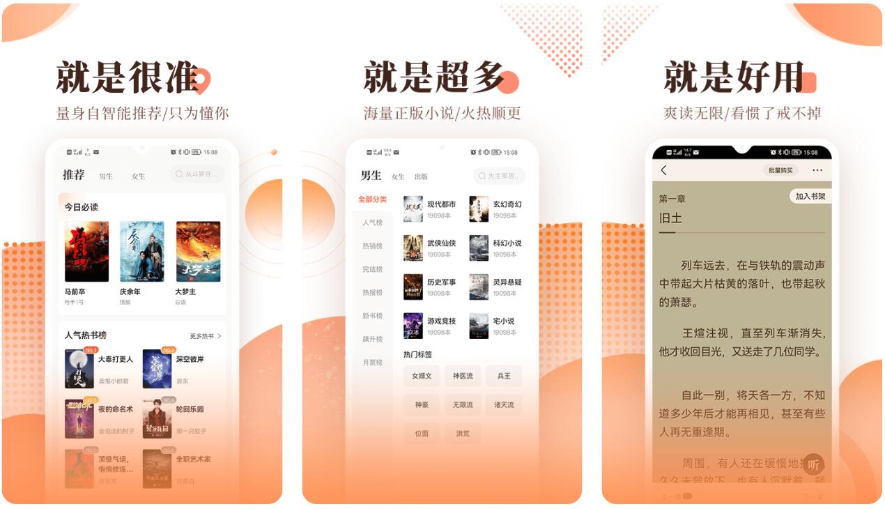 软件在阅读的过程当中可以自动为用户保存好进度,同时各位也可以将喜欢的书籍全部收藏到书架当中,而app也会提供各大热门榜单让用户进行参考,目前各位还可以在软件当中开启有趣的听书功能。