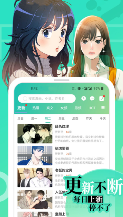 除了已完结和热门作品外,平台还提供独家的原创内容,让用户看个不停!不管是横屏还是竖屏,都可以随时在手机上观看。每天都会有更新的独家内容等待用户的光临。总而言之,《飒漫画》提供了一个追番容易、内容丰富的漫画平台,用户可以免费享受精品和原创作品,无论是在手机上横着还是竖着都能随时观看。