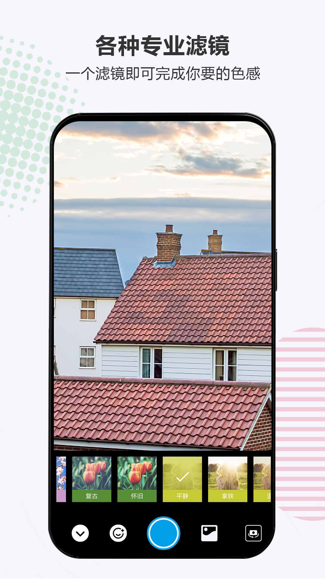 这是一款专门针对那些摄影人以及不爱拍照的发烧友开发的一款手机专业拍照软件。可以用在对生活中的随手拍照以及旅游路上的记录拍照,而且还给大家提供了各种具有创意性的照片风格,大家可以拍出独一无二的美照。而且他还是一个具有内置多款镜头的平台可以让手机的摄像头更加的强大。