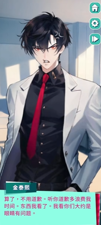 这款游戏主要是和惩罚有一些关系,游戏中的主人公叫金泰熙,是一个身穿白色制服的男生,但是从剧情中了解,金泰熙可不好惹,玩家们在游戏中要扮演的是一个打工人,每天要辛苦的上班,每周一还要与这个金泰熙开会,而且金泰熙脾气非常的臭!